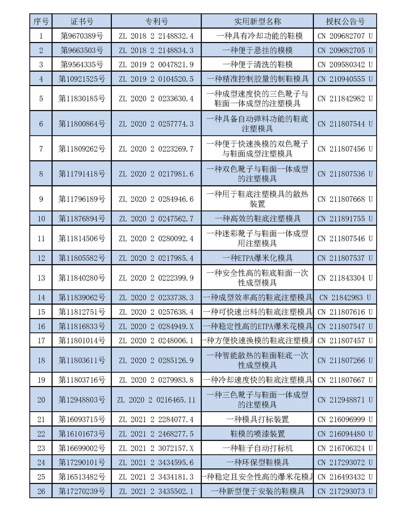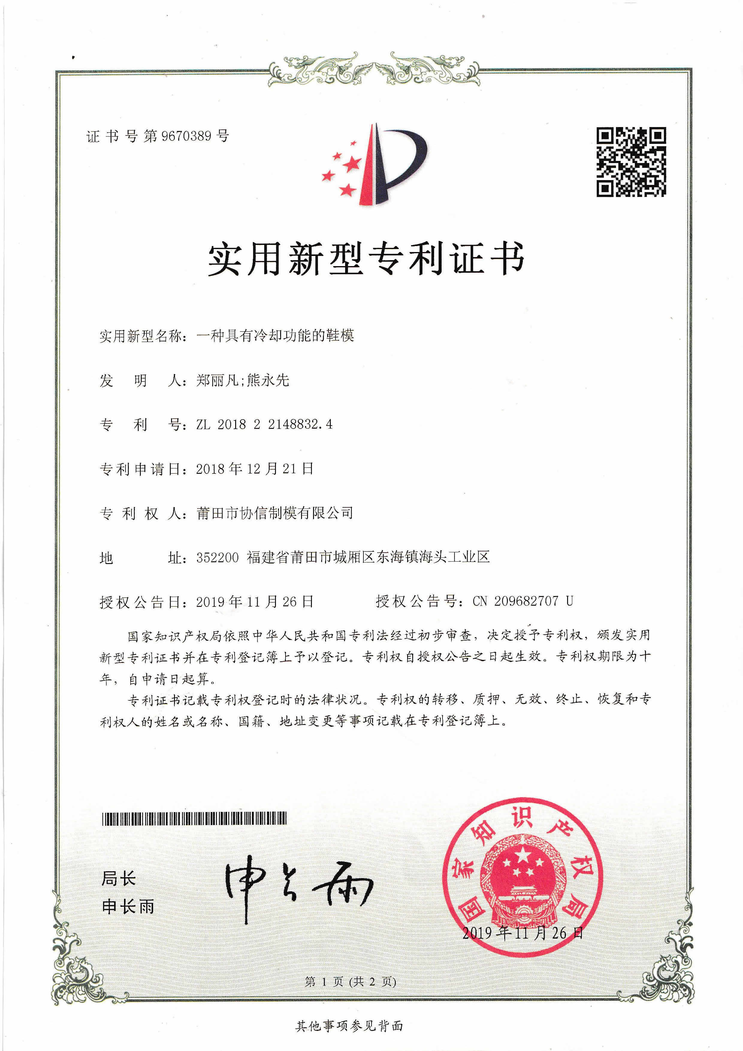 公司自成立以來,始終堅持以客戶需求為導向,依靠科技求發展,高度重視并且持續加大研發投入,組建技術中心,引進先進的技術開發設備:CNC高精度數控機床、光固化3D打印機設備、進口平面大銑床,精密平面雕刻機,單/雙頭放電機等各類高精度設備等近200多臺。通過多年的努力,目前公司已取得20項專利,并實現了專利成果轉化,為公司開拓市場,提高核心競爭力,提供了強有力的科技支撐。 公司以獨特的生產工藝和雄厚的開發力量,贏得了廣大制鞋企業的支持和信賴,產品目前主要銷往莆田、泉州、廈門、廣東省等地方,主要合作伙伴有李寧、迪卡儂、巴拉巴拉、銳步、斯凱奇、K.SWISS等世界知名品牌。協信以服務現有客戶、研發新型鞋類技術或非鞋類產品為主,致力于給所有中外客戶提供專業的品質、高效的交期和一流的服務!